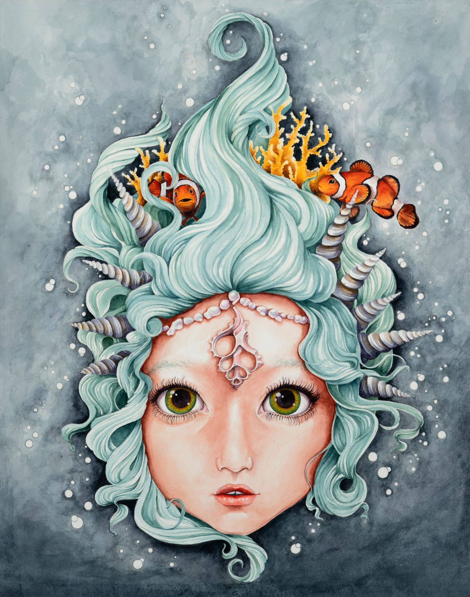 I've always considered myself a "serial dabbler". I was always playing around with many different forms of art. In 2020, I picked up watercolor for the first time in a long time. It was a medium that I had never really dove into. I felt well-versed in oil and acrylic painting, it was a refreshing change of pace. It really sparked my interest and challenged me, so I began practicing. I felt inspired, and painted the "Sea Queen" painting. It was the first painting I created that I felt I really WOW-ed myself. "Wow, that came from me?!"