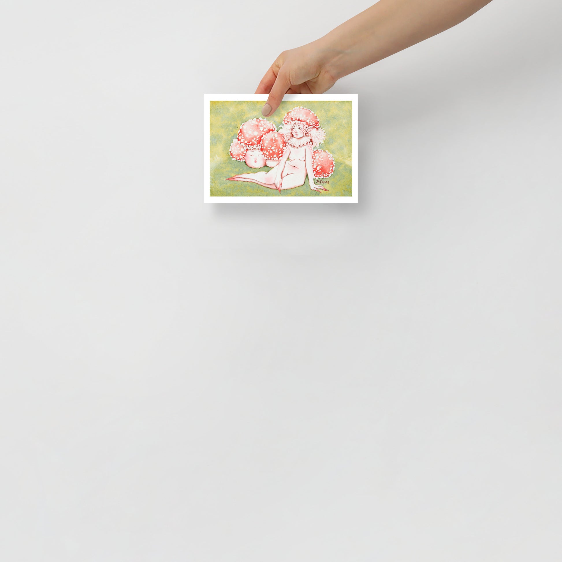 Signed and numbered limited edition reproduction of my original watercolor painting, "Mushroom Elf" created by me, Morgan Pallas.