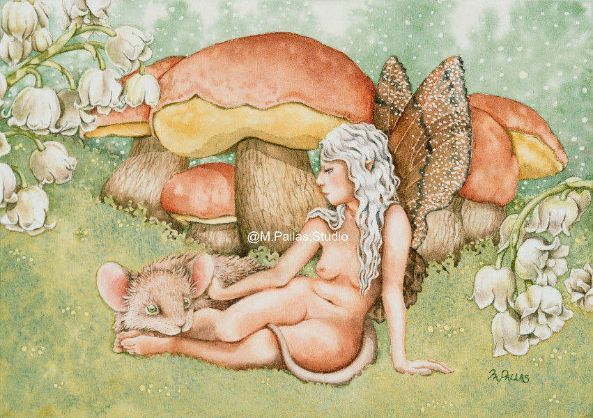 This painting was inspired by how I imagine fairies and mice being the best of friends.
