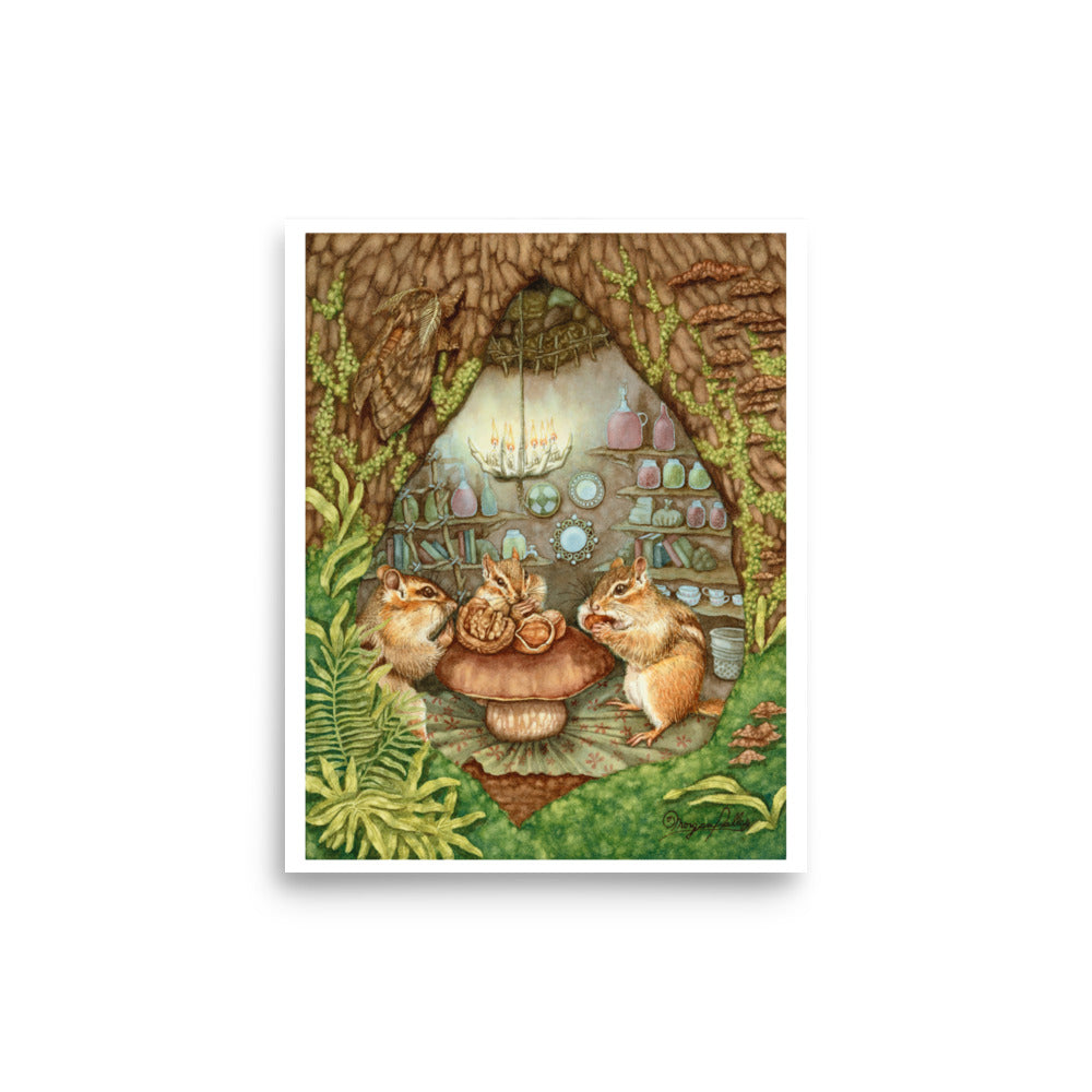 Signed and numbered limited edition reproduction of my original watercolor painting, "A Friendly Feast" painted by me, Morgan Pallas.